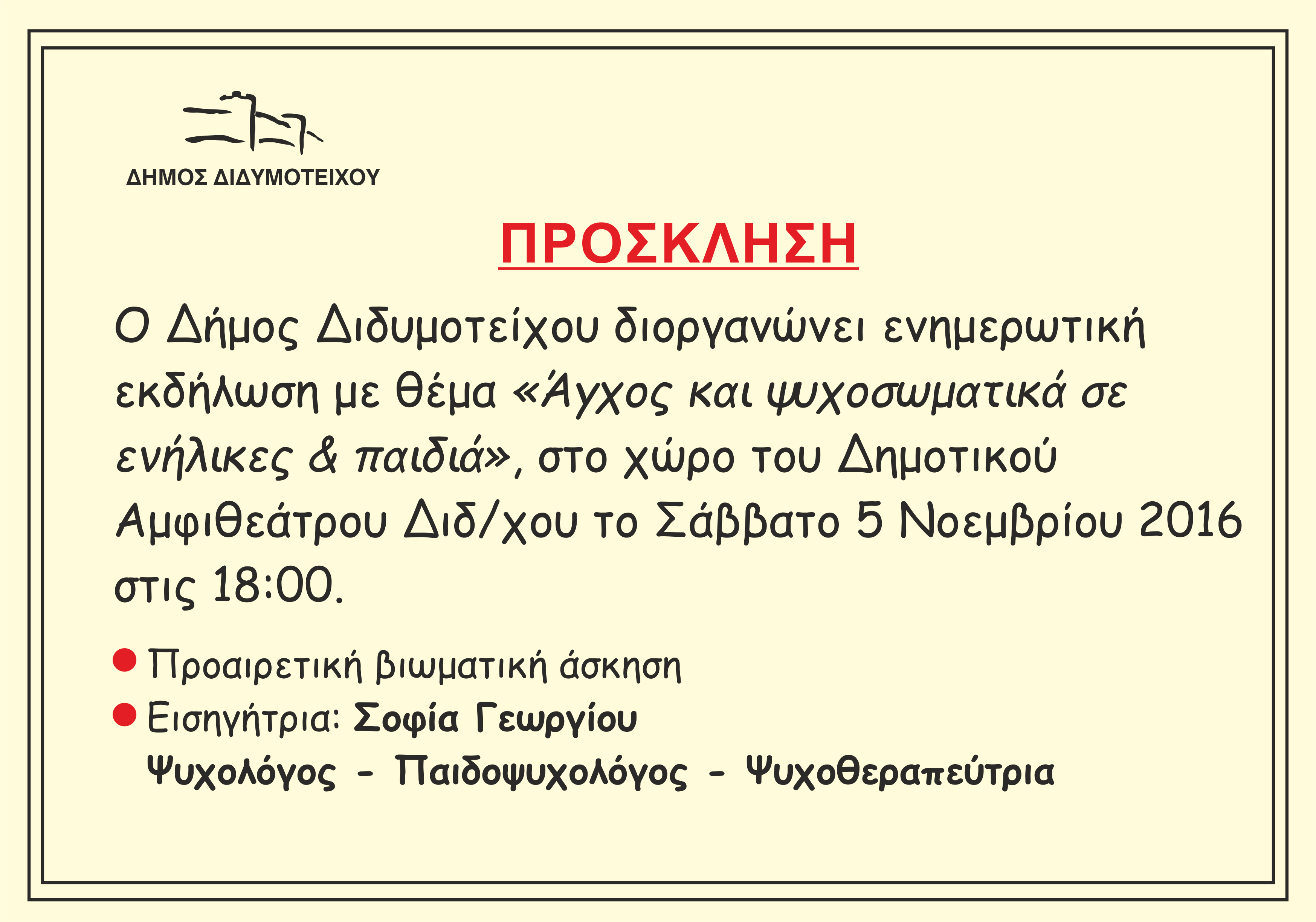Ενημερωτική εκδήλωση "Άγχος και ψυχοσωματικά"